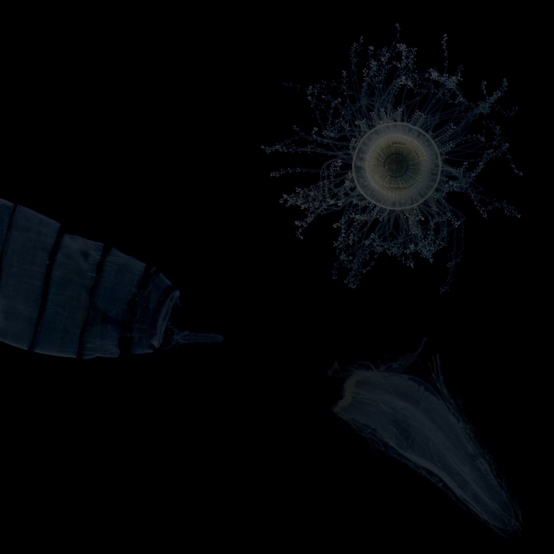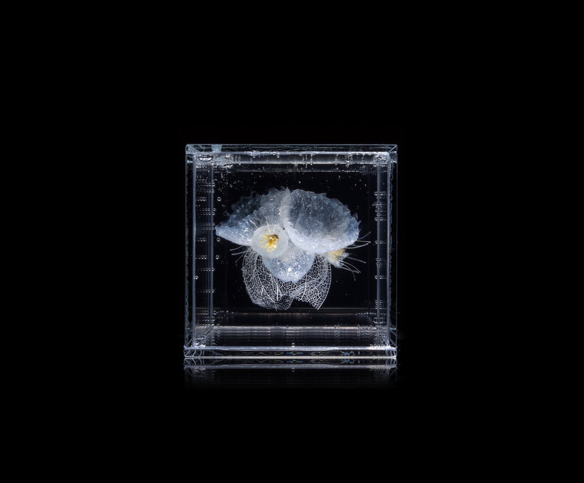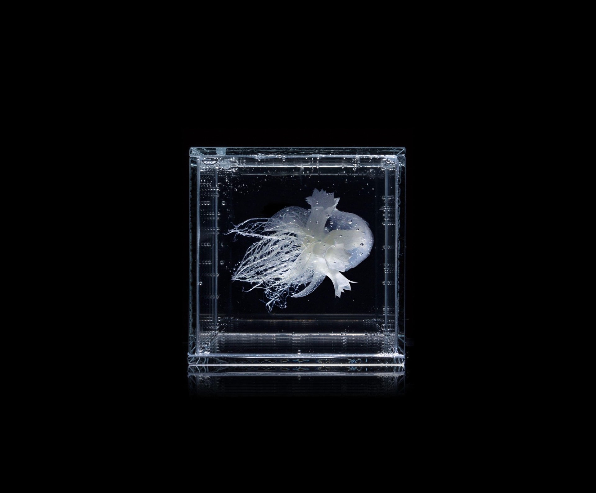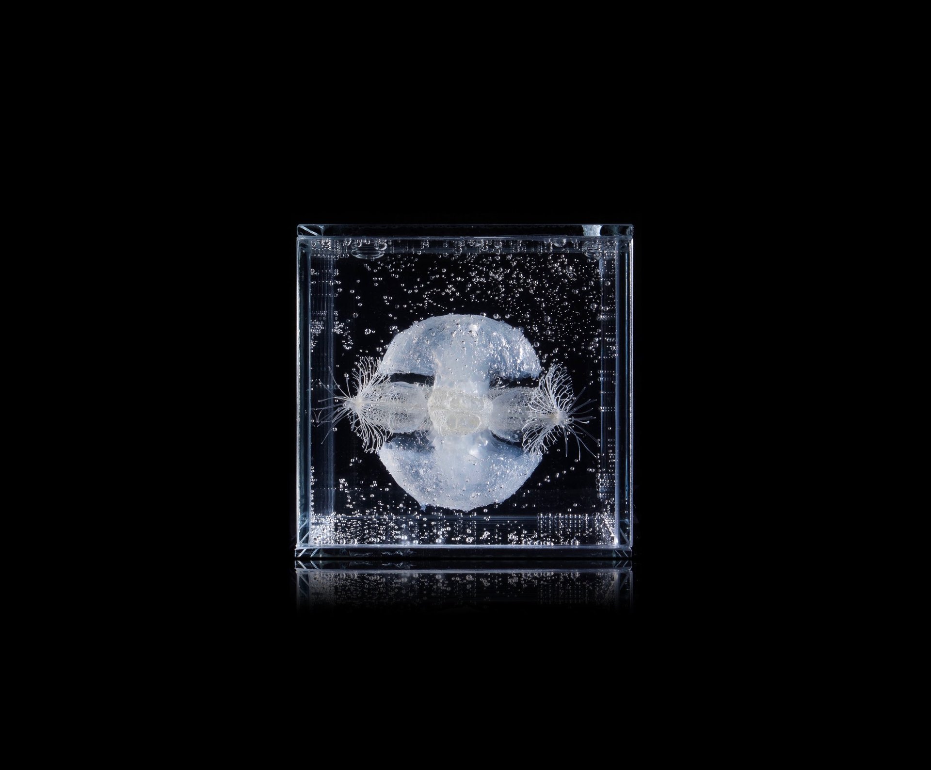 Materijal: biljno i životinjsko tkivo, alge, silikon, prozirni konzervans gelaste forme, staklo